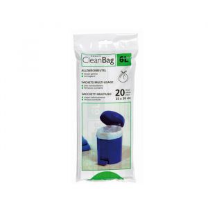 Masse: Länge 21.5cm / Breite 21.5cm / Höhe 21.5cm ... - Allzweckbeutel "CleanBag" 6 LiterPack à 20 Stück, Karton à 60 PackArtikelnummer: 2696CHF 106.00 CHF 114.60CleanBag-Allzweckbeutel HD/PE 6l, einzeln gefaltet, mit Zugband